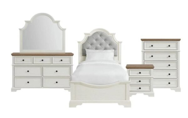 Equally important, the two-tone finish adds warmth and charm, creating a balanced look that easily complements both vibrant and neutral color schemes. In addition, the collection includes a dresser, chest, nightstand, and mirror—each piece designed with thoughtful detail and child-friendly proportions.