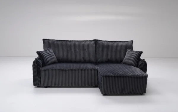 This sectional features a ribbed corduroy-like texture and plush upholstery that deliver luxurious comfort while adding tactile charm. High-density foam cushions provide a cozy seating and sleeping experience, ensuring this sectional is as functional as it is stylish. Its clean lines and bold color make it a standout centerpiece, perfectly suited for modern, industrial, or eclectic interiors.