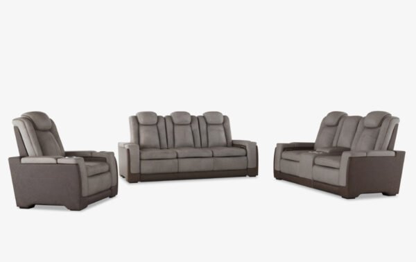 This collection also incorporates practical elements, like hidden storage compartments in the arms and console, keeping your living area organized. The sofa features a drop-down tray with additional wireless charging, while the recliner includes a cupholder.