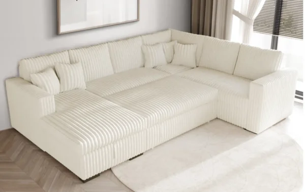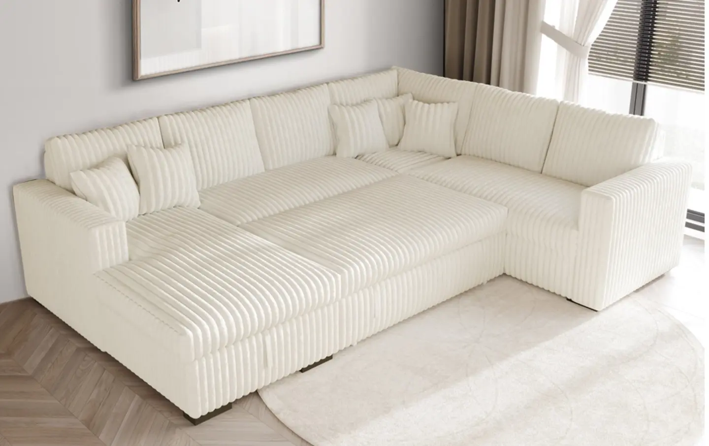 Transform your living space with the Tadley Sectional, a thoughtfully designed U-shaped sofa that blends modern style with everyday practicality. Upholstered in soft corduroy, this sectional offers a cozy, textured feel that invites you to sink in and stay awhile. Its spacious layout is perfect for entertaining guests, enjoying family movie nights, or simply stretching out after a long day.