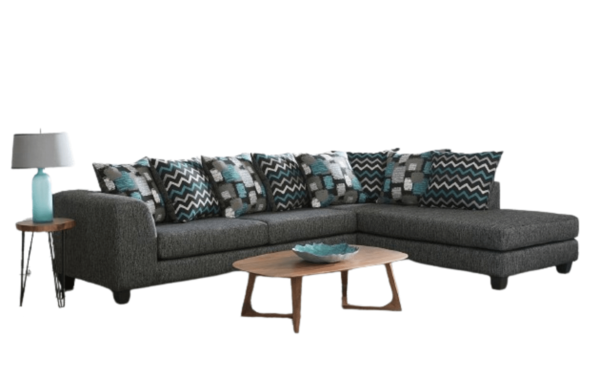With its Dark Grey upholstery and exposed brown sofa legs, the Watson Sectional Sofa exudes a sense of sophistication and elegance. The combination of colors creates a harmonious balance, while the patterned pillows add a touch of personality and style to the ensemble.